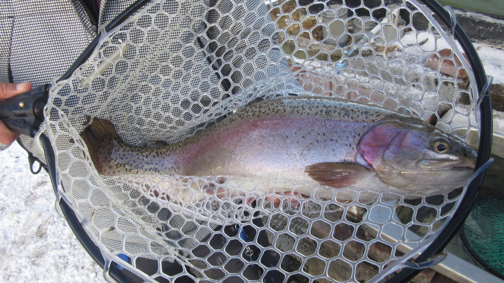 第1ポンド 小型スプーンのペレットカラーで60センチが釣れました。