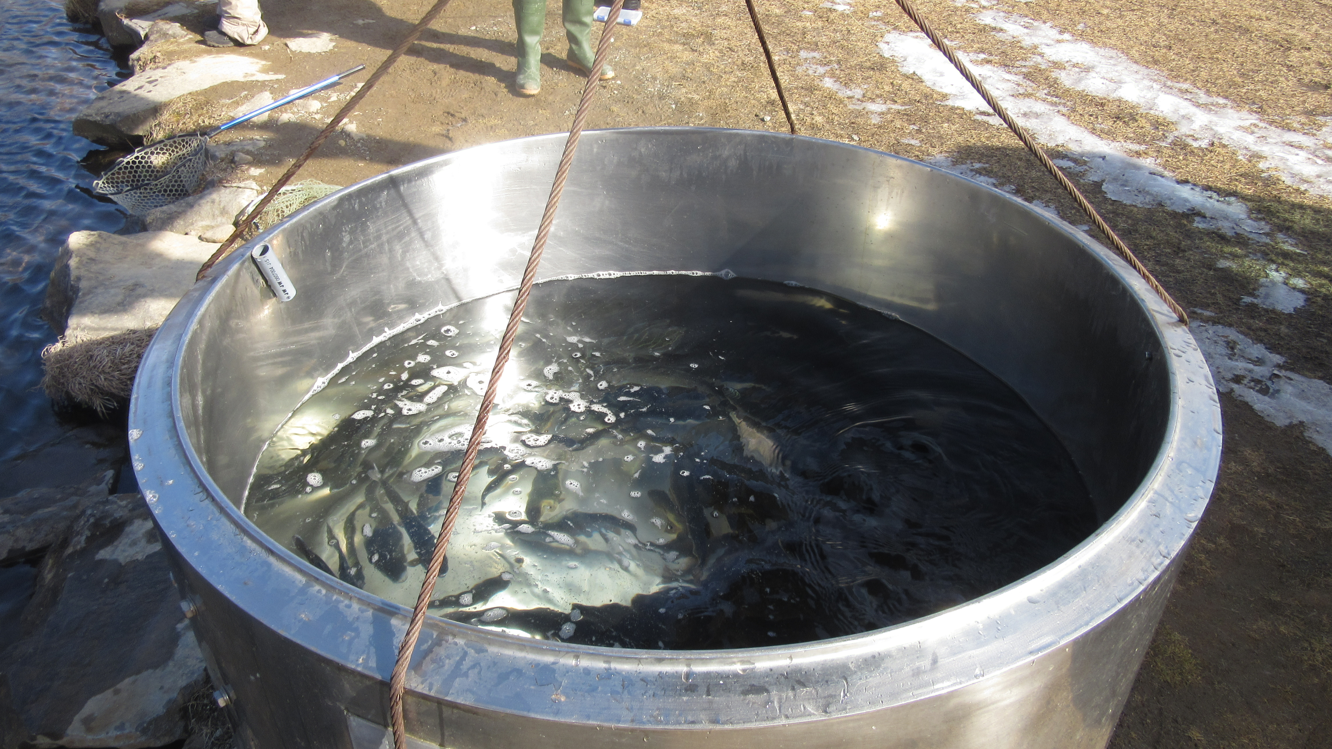 放流情報 2020/01/26 毎週土日祝は午前11時前後に放流を行っております。 原則、土曜日に第二ポンド(受付前から上側の池)日曜日に第一ポンド(受付前から下側の池)となっておりますが当日は受付の際に受付担当者にお問い合わせください(電話での問い合わせでも結構です。)。 トラクターでの大型水槽を使った放流を是非ご覧になって下さい。 尚、放流時の大型水槽のスペース確保のため釣場の移動を一時的にお願いする場合があります。ご協力お願い致します。 放流の様子です。