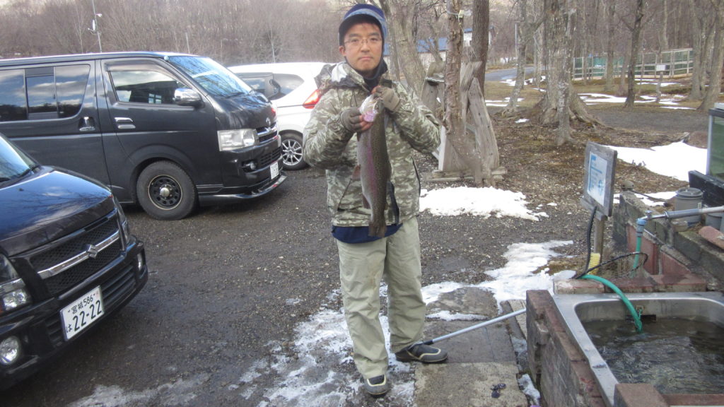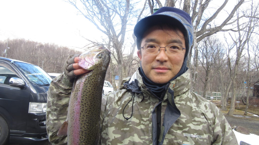第一ポンドで50オーバーを釣り上げました。スプーン(ウォーターランド・アルミん・1.5グラム・赤金)でした。