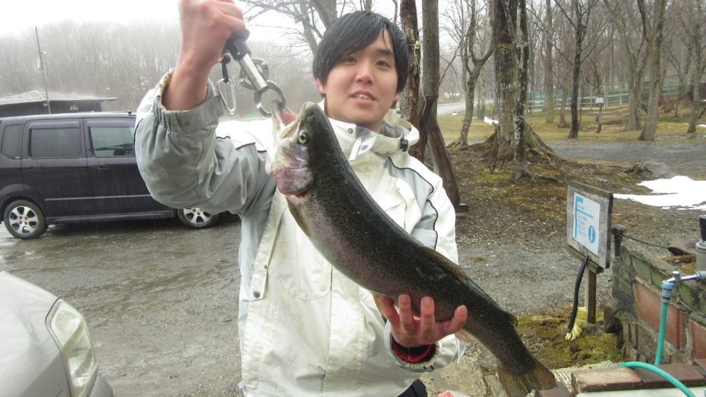 第1ポンドで55オーバーを釣り上げました. 使用ルアー、フォレスト MIU1.5g黒色でした.